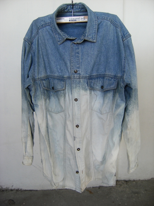 Jeśli jesteśmy już przygotowani przypinamy koszulę do wieszaka i moczy ją w wodzie , a następnie zamaczamy w wybielaczu do miejsca gdzie chcemy aby była rozjaśniona , jeszcze raz polewamy ją wodą i zostawiamy na noc . Rano mamy już gotową koszulę , ale pamiętajcie żeby ją wypłukać ponieważ może nie mieć zbyt ładnego zapachu .